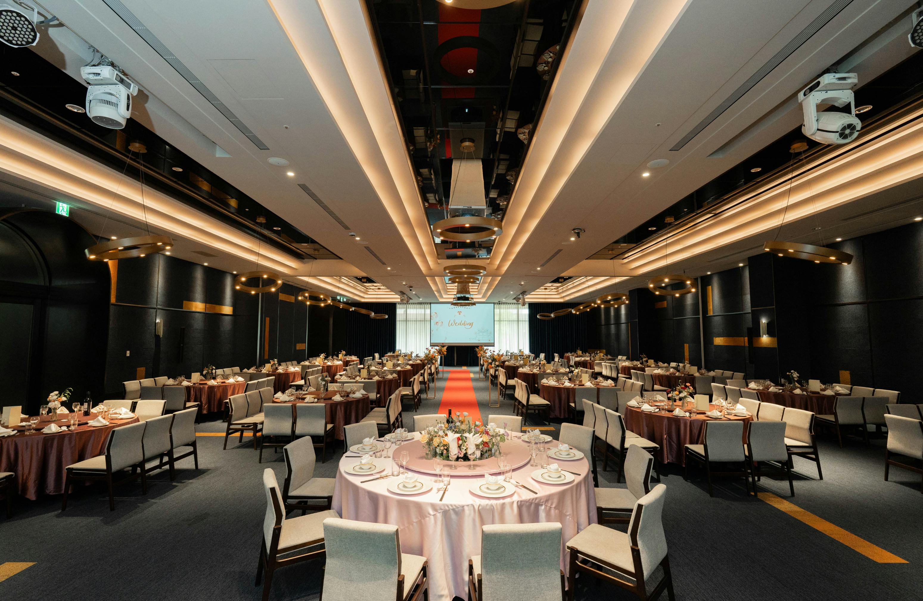 作為全新落成的宴會殿堂,烏日璞旅配備了頂級的燈光音響與視聽設備。無論是感人的成長影片播放,或是進場時隨著音樂流轉的聚光燈效,都能精準地將現場氣氛推向高潮,為您的婚禮增添一抹如電影場景般的夢幻色彩。